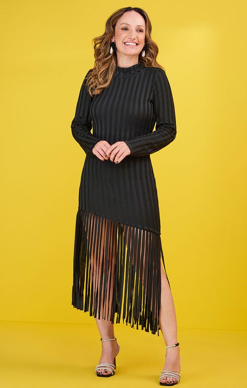 25%RoupasOUTLET DDCJANEIRO 40%INVERNO 23ALTO INVERNO DDCENJOYCor: PretoVestido Tricot Midy Canelado Franjas R$ 1.868,00R$ 1.401,00ou 10x de R$ 140,10